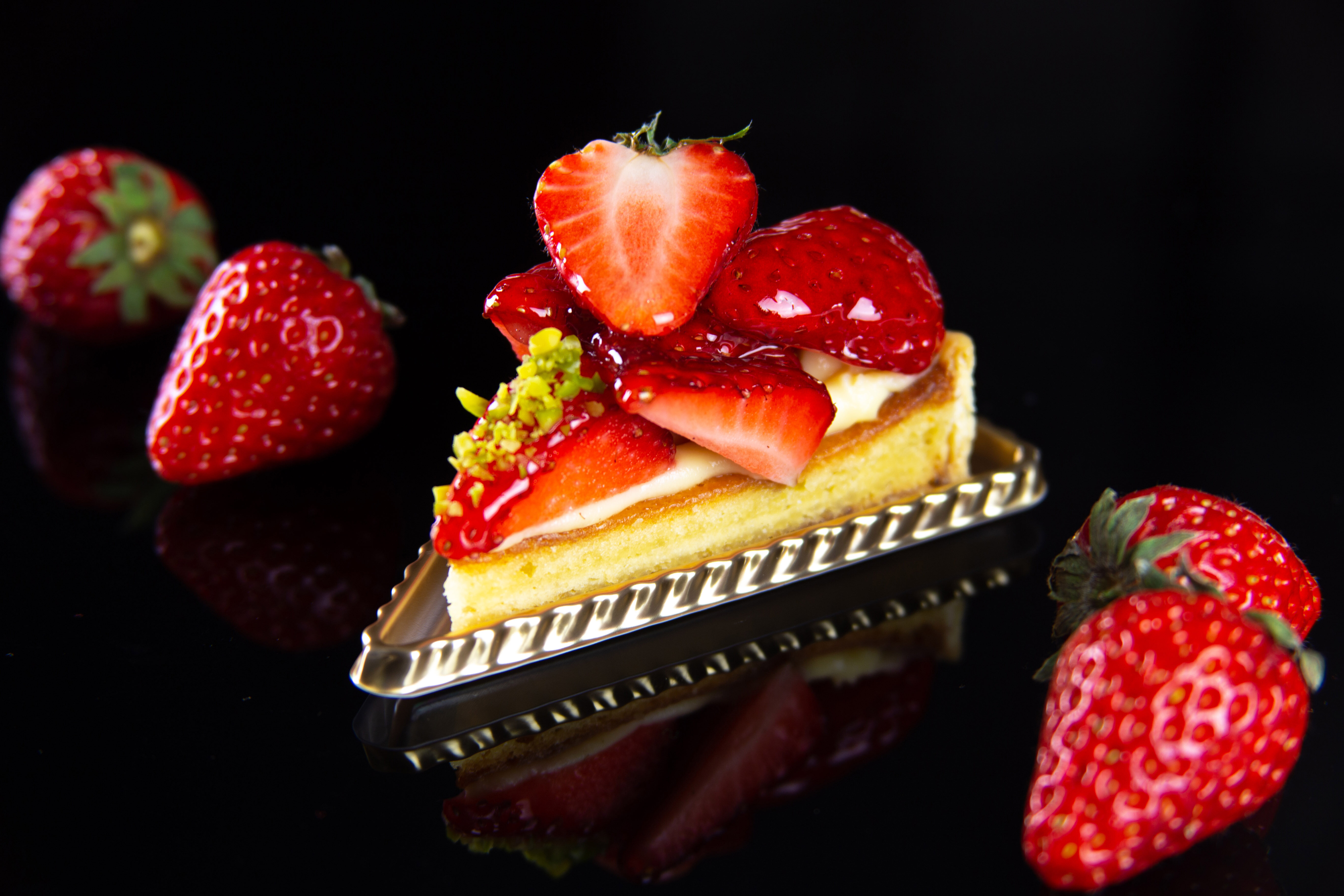 アーモンドクリームで焼き上げたタルト生地にカスタードクリームを絞り、いちごをデコレーションしました。